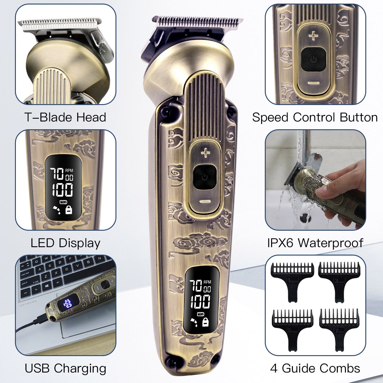 Hatekker Máquina de Cortar Cabelo 767 Ouro